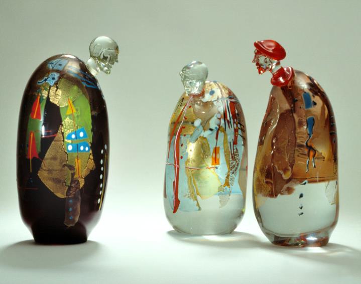 Die Figuren entstanden aus den so genannten „Idolen“. „Idole“ werden die ersten, von Menschen aus Ton hergestellten Figürchen genannt; noch ohne ausformulierten Kopf oder Gliedmaßen (und sie sind älter als gebrannte Gefäße). Die Glasidole sind eine Reminiszenz an diese Zeit und damit an die Ursprünglichkeit künstlerisch sich abgrenzender Tätigkeit des Menschen.