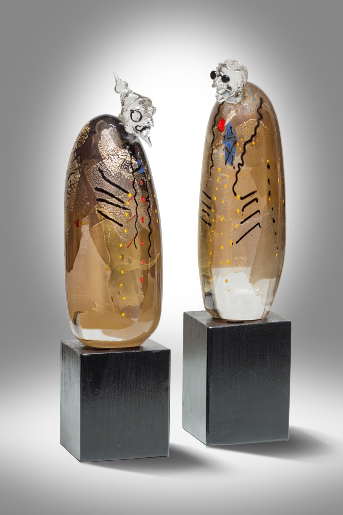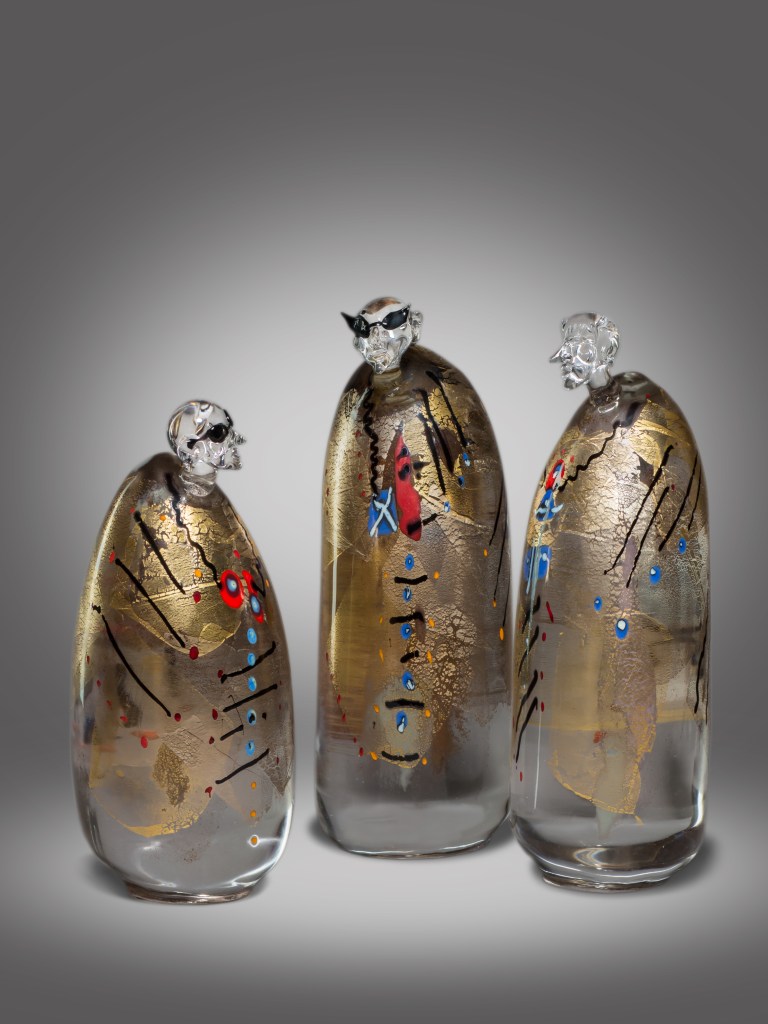 Die Idole sind reine Ofenarbeiten, ihre „Nachfolger“ eine Kombination aus Lampen- und Hüttentechnik.