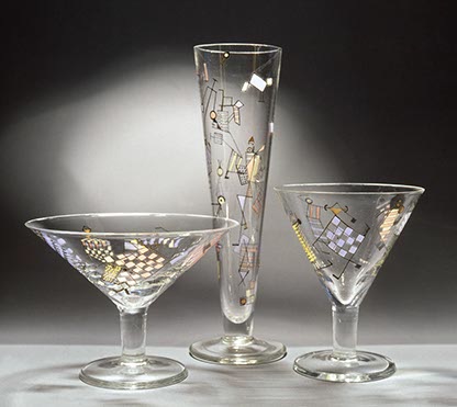 Die Dekore darauf sind ausschließlich im heißen Zustand aufgebracht und haben eine oberste Prämisse: entsprechend der Dreidimensionalität von Gefäßen müssen sie ringsum, d. h. an jeder Stelle, spannend sein.